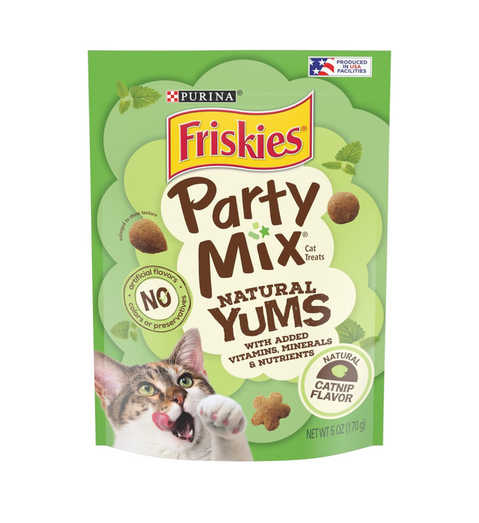 تشویقی گربه Friskies Party Mix که برای گربه های بالغ طراحی شده است دارای کرانچ خوشمزه و شکل های سرگرم کننده است تا گربه شما را علاقه مند نگه دارد.