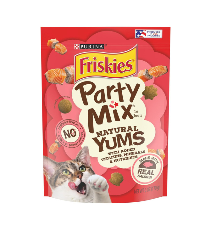 تشویقی گربه Friskies Party Mix که برای گربه های بالغ طراحی شده است دارای کرانچ خوشمزه و شکل های سرگرم کننده است تا گربه شما را علاقه مند نگه دارد.