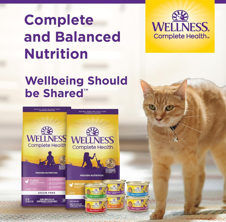 • تغذیه کامل و متعادل: غذای گربه Wellness توسط متخصصان تغذیه و دامپزشکان طراحی شده تا سلامت و رفاه حیوان خانگی شما را تضمین کند.