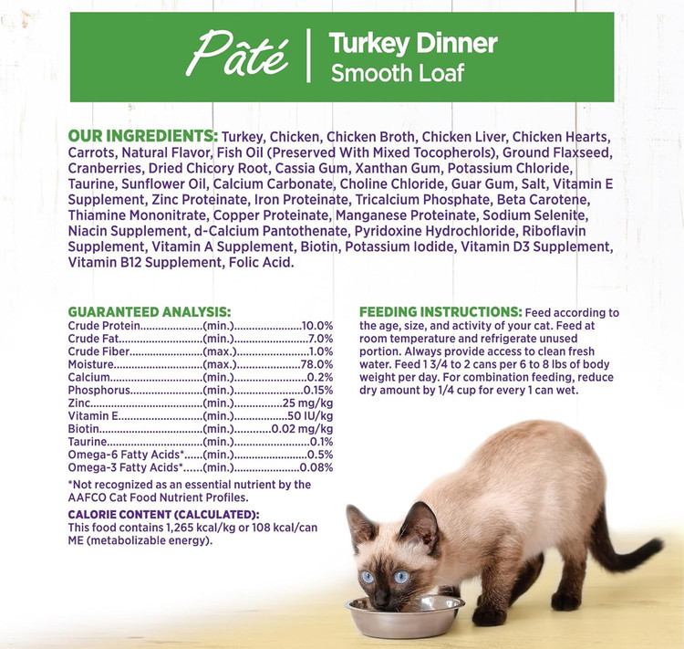 • شام بوقلمون: این غذای طبیعی برای گربههای بالغ منبعی عالی از پروتئینهای باکیفیت، ویتامینها، مواد معدنی و اسیدهای چرب ضروری است. پاتهای کاملاً نرم و یکدست که طعمی بینظیر دارد و گربه شما عاشق آن خواهد شد.