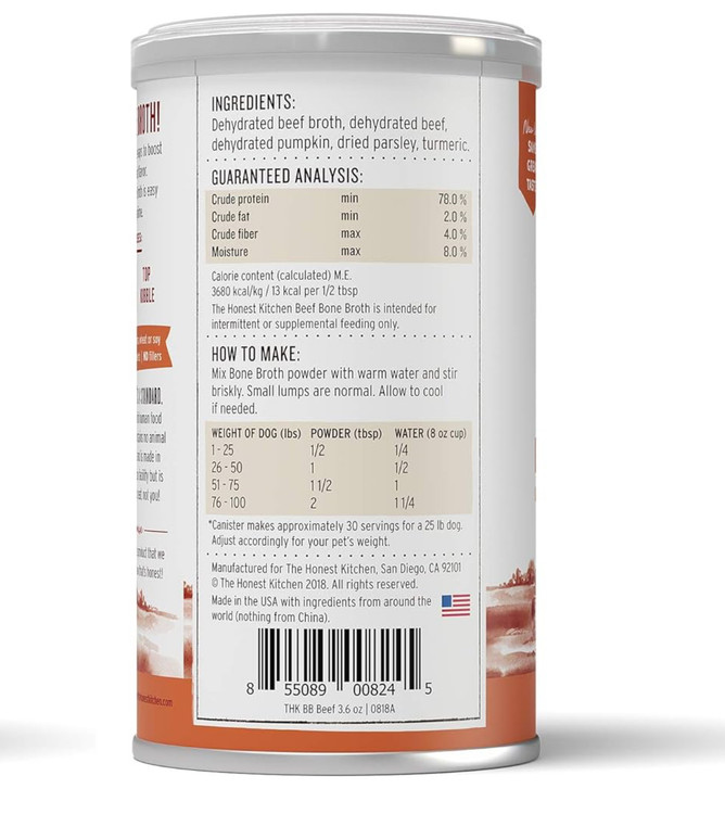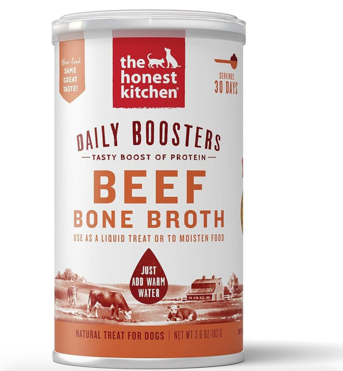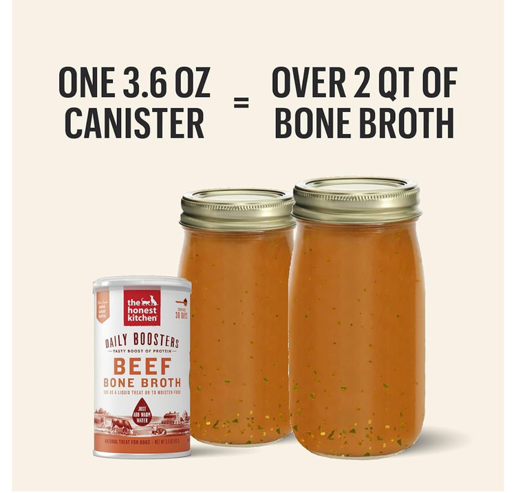 • تغذیه اضافی: با اضافه کردن آبگوشت استخوان گاو The Honest Kitchen، طعم غنی از پروتئین و مواد مغذی را به غذای سگ یا گربه خود اضافه کنید. با سوپرفودهایی مثل کدو تنبل و زردچوبه غنی شده است و برای نرم کردن غذای خشک یا پر کردن اسباببازیهای جذاب یخی عالی است.