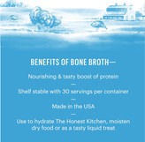 • افزایش پروتئین و طعم: این آبگوشت کاربردی با طعمی بینظیر و مقدار اضافی پروتئین، یک خوراکی گرم عالی است. میتوانید آن را به عنوان میانوعده، روی غذای خشک بریزید یا برای هیدراته کردن غذای The Honest Kitchen استفاده کنید.