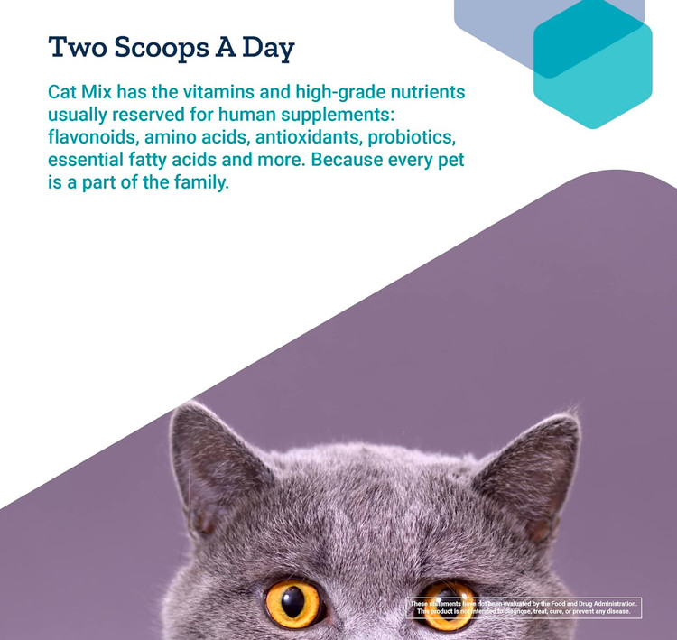 • پروبیوتیکها و سایر مواد مغذی – Cat Mix از سلامت گوارش با استفاده از سویههای پروبیوتیک مناسب گربه حمایت میکند. همچنین با اسیدهای آمینه آرژنین و تورین به سلامت چشم، کلیه و پانکراس کمک میکند.