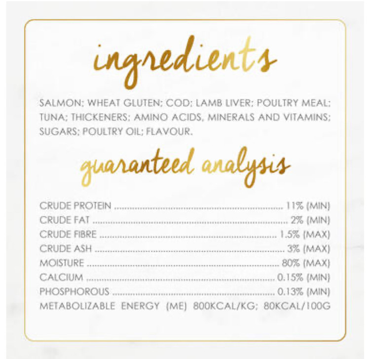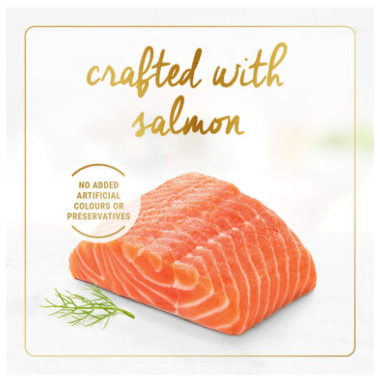 ساخته شده با ماهی سالمون واقعی و با کیفیت آهسته پخته شده و در یک سس لذیذ غلیظ سرو می شود تغذیه 100% کامل و متعادل برای گربه های بالغ