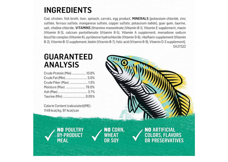 • غذای گربه با پروتئین بالا، تهیهشده از ماهی کاد آلاسکایی بهعنوان ماده اصلی شماره ۱