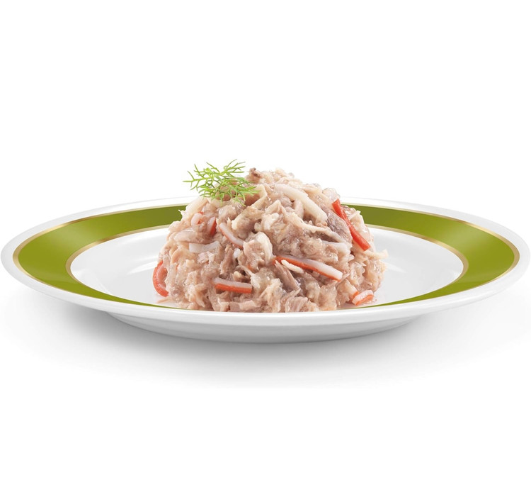 • ترکیب بینقص تکههای نرم غذاهای دریایی و قطعات مرغ آبدار در سس ماهی تن.