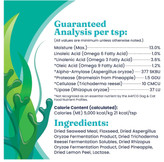 • پودر غنی از مواد مغذی: این مکمل با استفاده از جلبک دریایی، اولین سوپرفود طبیعی زمین، ترکیبی از گونههای قرمز، سبز و قهوهای (مانند کِلپ) ارائه میدهد که مزایای فوقالعادهای برای سلامتی سگها و گربهها دارد.