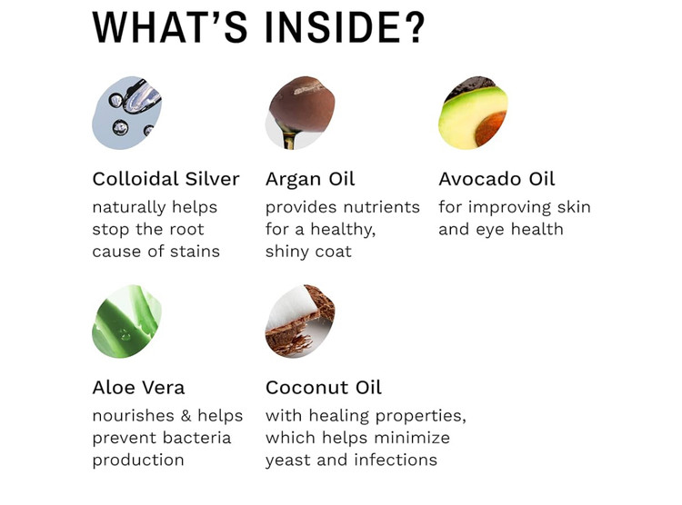 • مؤثر برای نژادهای سفید/صورتصاف: اثربخشی آن توسط پرورشدهندگان، دامپزشکان، آرایشگران حرفهای و علاقهمندان به نمایش حیوانات تأیید شده است. برای نژادهای اسباببازی سفید/روشن، سگهای دارای چینهای پوستی و گربههای صورتصاف مانند پرشین بسیار مؤثر است.