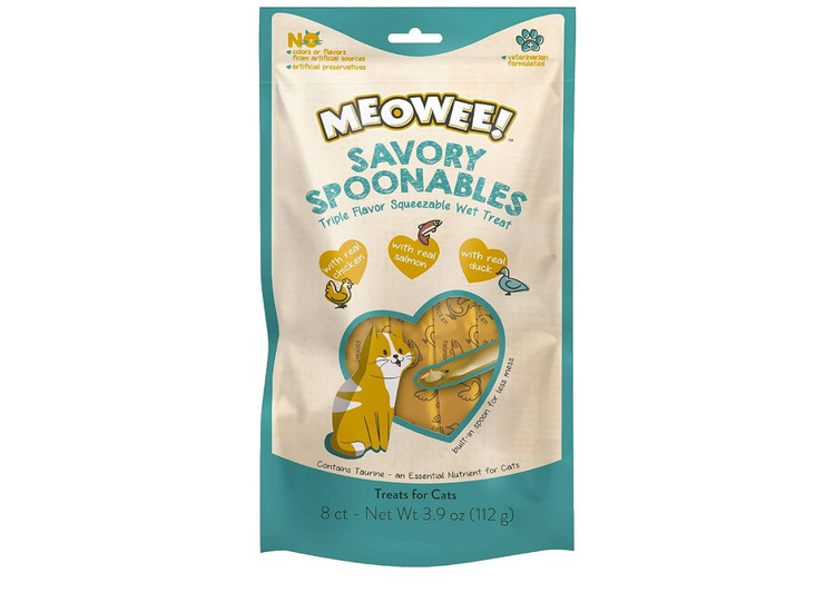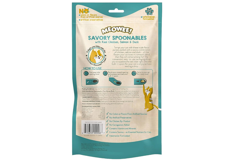 • طعم سهگانه: گربه خود را با این تنقلات مرطوب سه طعمی فریبنده که از ترکیب مرغ واقعی، سالمون و اردک تهیه شدهاند، وسوسه کنید.