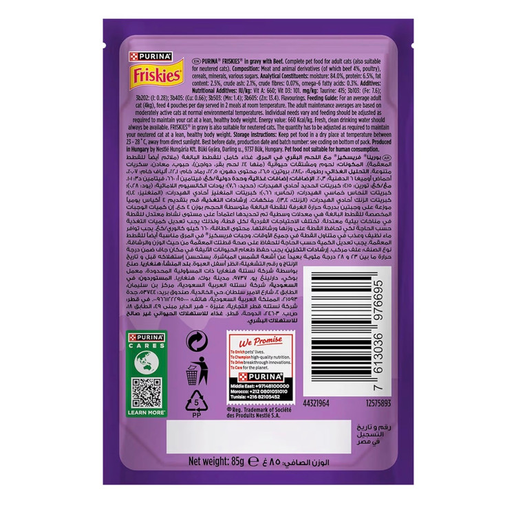 فریسکیز گوشت در سس غلیظ یک غذای پرطرفدار و خوشمزه برای گربهها است که از گوشت با کیفیت بالا تهیه شده و در سس غلیظ و خوش طعم قرار دارد. این محصول طعمی لذیذ و غنی دارد که گربهها را به راحتی جذب میکند و به آنها انرژی و تغذیه کامل میدهد. فریسکیز در انواع مختلف گوشت مانند مرغ، گوشت گاو و ماهی موجود است و به دلیل غنی بودن از پروتئینها و مواد مغذی، برای سلامت گربهها مفید است. این غذا به طور ویژه برای گربههای بالغ طراحی شده و میتواند به عنوان وعده اصلی یا به عنوان خوراک مکمل در کنار غذای اصلی استفاده شود.