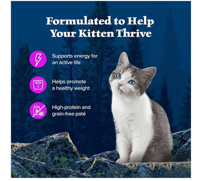 • محتویات سالم و طبیعی: این فرمول غذای مرطوب بدون غلات برای گربههای بچه از هیچگونه غذاهای فرعی مرغ یا مرغ، ذرت، گندم یا سویا استفاده نمیکند.