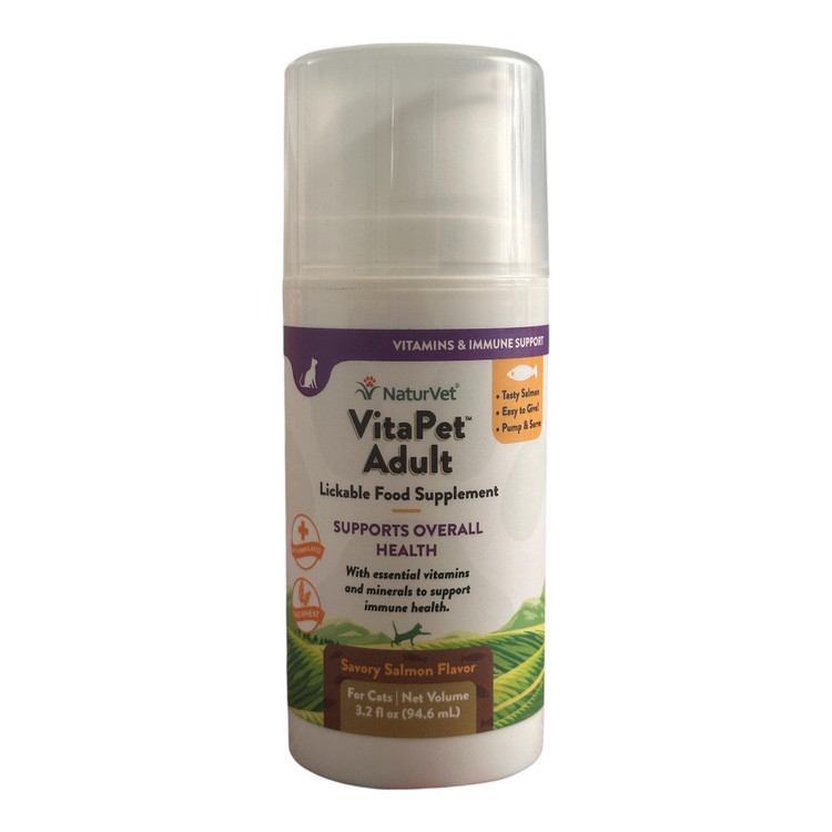 NaturVet VitaPet Adult یک مکمل غذایی کامل و لیسیدنی با طعم دلچسب سالمون است که بهطور خاص برای حمایت از سلامت عمومی گربههای بالغ فرموله شده است. این محصول حاوی ویتامینها و مواد معدنی ضروری بوده و به تقویت سیستم ایمنی، افزایش انرژی، سلامت پوست و مو، و عملکرد بهتر بدن گربهها کمک میکند.