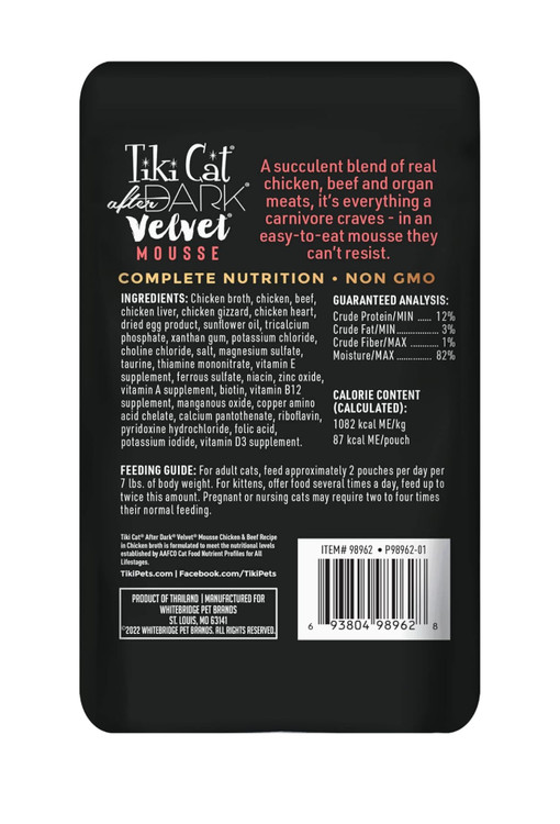موس مخملی تیکی کت افتر دارک – ۸۰ گرم | بدون غلات و سیبزمینی | سرشار از پروتئین و گوشت اندامهای مغذی