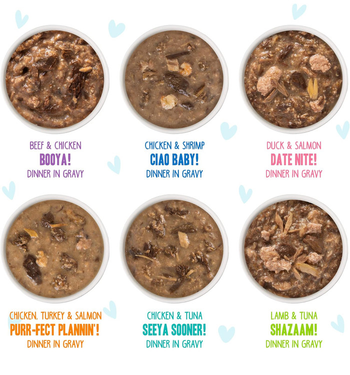 🔸 هر طعم ترکیبی از پروتئینهای باکیفیت مثل ماهی تن، مرغ، سالمون، گوشت گاو، بره و اردک هست — در یک سس گریوی خوشمزه و خوشعطر که گربهها عاشقش میشن!