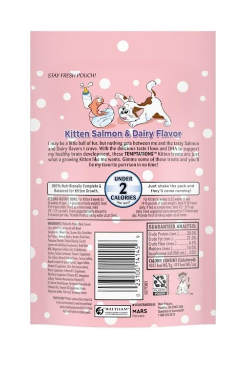 • ۱۰۰٪ تغذیه کامل: تشویقی TEMPTATIONS حاوی اسید چرب DHA اُمگا-۳ برای کمک به رشد سالم مغز