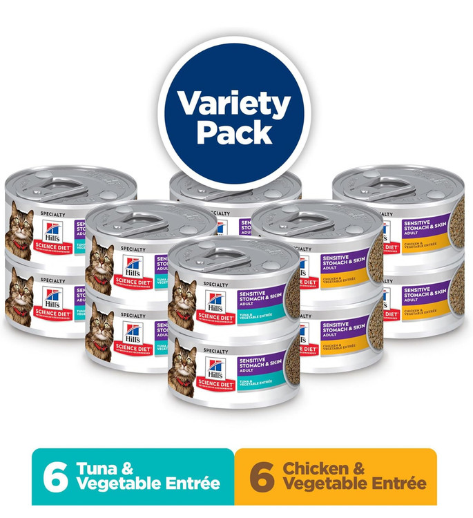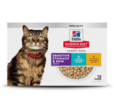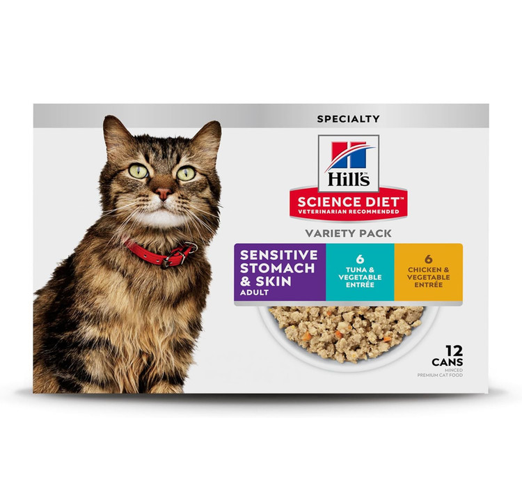غذای مرطوب Hill’s Science Diet مخصوص گربههای بالغ با معده یا پوست حساس، حاوی ترکیبی دقیق و قابلهضم از مواد مغذی برای گوارش بهتر و سلامت پوست و مو.