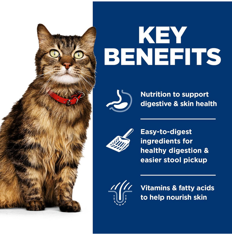 بسته غذای مرطوب هیلز ساینس دایت مخصوص گربههای بالغ با مشکلات گوارشی و حساسیت پوستی، با فرمولی ملایم و قابلهضم برای بهبود سلامت درونی و ظاهری گربه شما.