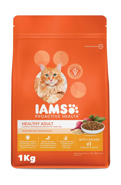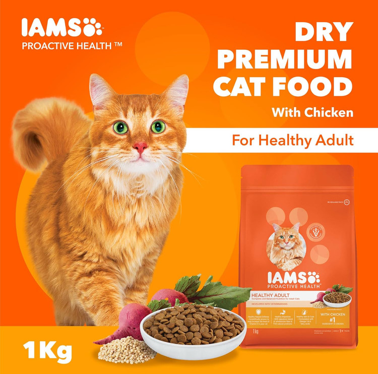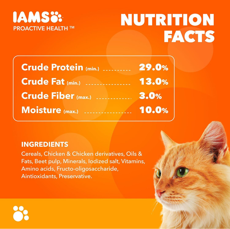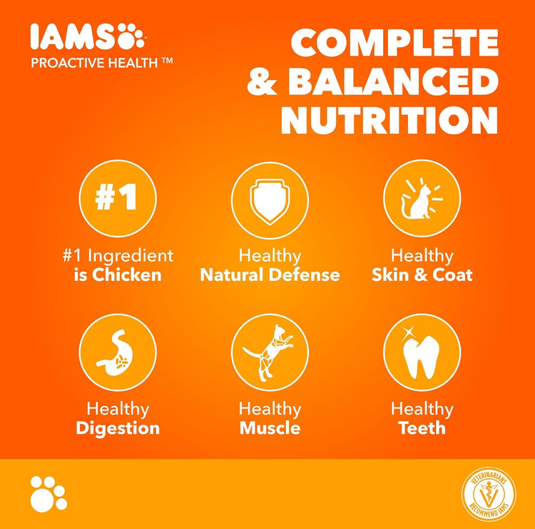غذای خشک گربه IAMS با طعم مرغ – مناسب برای تمام مراحل زندگی، مخصوص معدههای حساس
