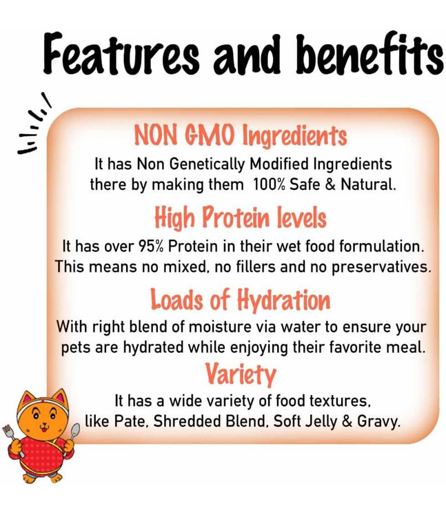 غذای لذیذ و سبک برای بچهگربههای در حال رشد با تکههای ریشریششده مرغ در سس خوشطعم، مناسب برای وعدهی اصلی یا ترکیب با غذای خشک.
