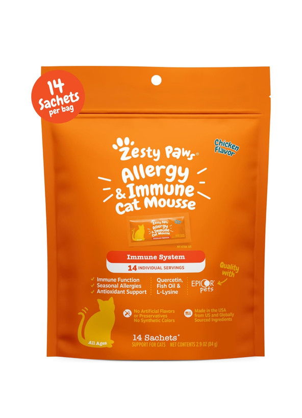 خوراک لیسیدنی Zesty Paws برای آلرژی و سیستم ایمنی، یک مکمل سالم و خوشطعم برای گربههاست که با ترکیبات مؤثر به کاهش علائم آلرژی فصلی کمک میکنه و همزمان سیستم ایمنی رو تقویت میکنه.