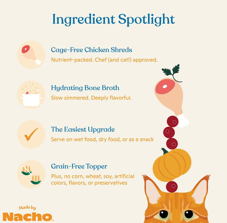 ساخته شده توسط ناچو و بابی فلای هر دستور غذایی در منوی ما طعم ها و بافت هایی را که گربه ها میل می کنند با موادی که توسط سرآشپز الهام گرفته شده و توسط متخصصان تغذیه تایید شده است، ترکیب می کند. خوشمزه ترین راه برای سالم ماندن ما با متخصصان تغذیه حیوانات خانگی پیشرو همکاری کردیم تا این پوره رویه غذای حمایت کننده استخوان و مفاصل را ایجاد کنیم تا با کیبل یا غذای مرطوب گربه شما مخلوط شود. پشتیبانی مشترک برای گربه های مسن تر مواد اصلی مرغ بدون قفس و صدف سبز نیوزیلندی است که گلوکزامین و کندرویتین سولفات را برای حمایت از سلامت و تحرک مفاصل فراهم می کند. هر ماده حاوی اسیدهای چرب امگا 3 به حمایت از تحرک مفاصل کمک می کند، در حالی که عصاره yucca schidigera به عنوان یک ضد التهاب و ضد آرتریت عمل می کند. عصاره استخوان برای استخوانهای قوی آبگوشت استخوان ما که آهسته میجوشد (و فوقالعاده آبرسان!) پروتئین اضافی اضافه میکند و مقاومت در برابر این تاپر را غیرممکن میکند.