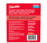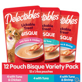Delectables® اولین سوپ لیسیدنی Lickable™ گورمه هست که ترکیبی خوشمزه از مرغ واقعی و ماهی گوشتی و آبدار رو در سه بافت لذیذ ارائه میده: بیسکو، خورشتی، پاته و سوپهای طعمدار.