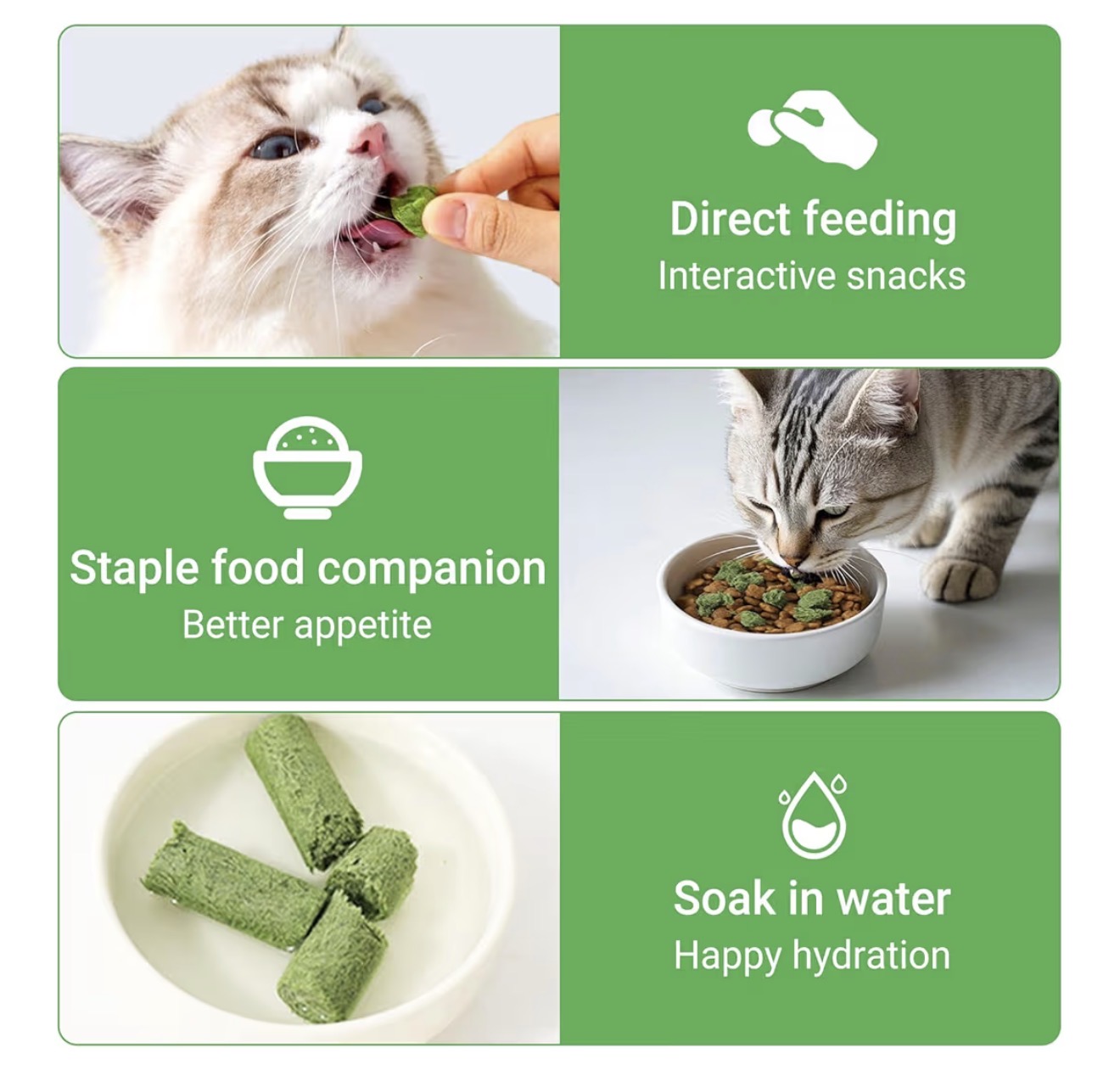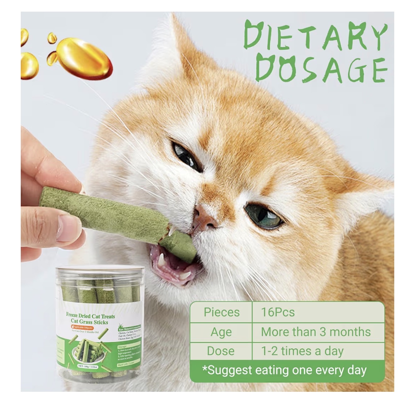 فریزدراید علف گربه هر پک ۱۶ عدد (۱۰۰ گرم) برای دفع گلوله مویی و تمیز کردن دندان)