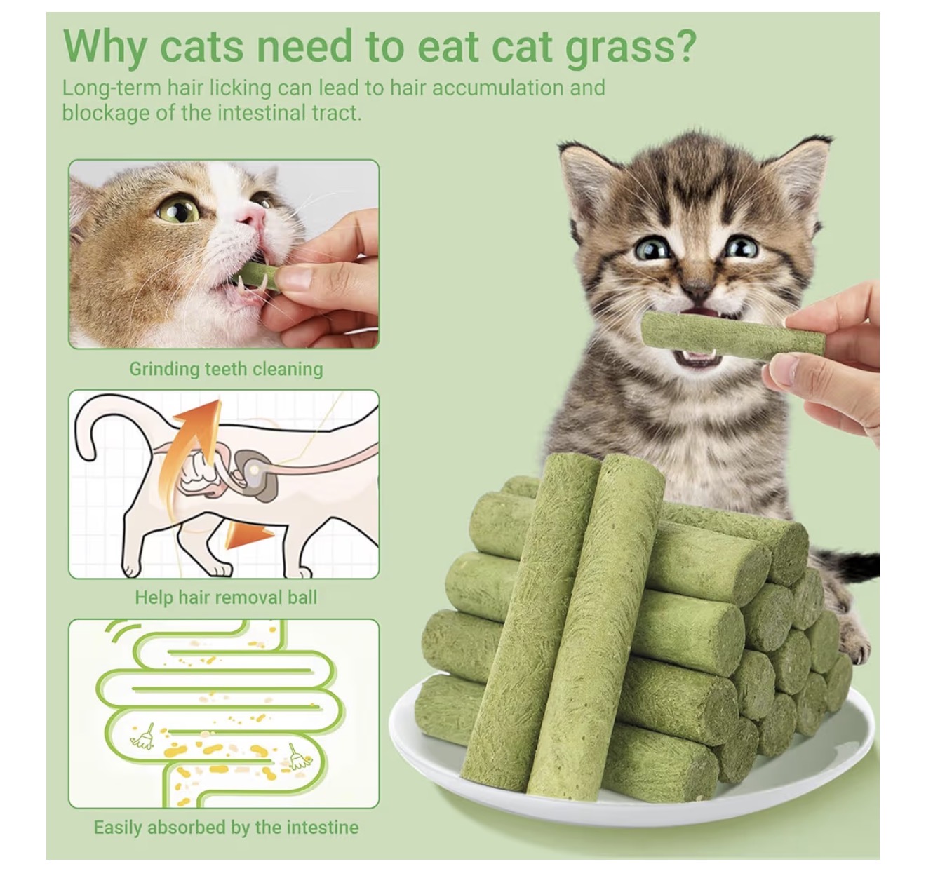 • فیبر گیاهی طبیعی: با توپهای قفسی علف گربه (Cat Grass Stick Cage Balls) که سرشار از فیبر طبیعی هستند، به گوارش سالم گربهتان کمک کنید. این محصول بهطور ملایم از معده و روده گربه مراقبت کرده، سلامت روده را تقویت میکند و از تشکیل توپهای مویی میکاهد. همچنین نیاز گربه به جویدن را برآورده کرده و به از بین بردن موهای بلعیدهشده کمک میکند تا گربهای شاد و سالم داشته باشید.