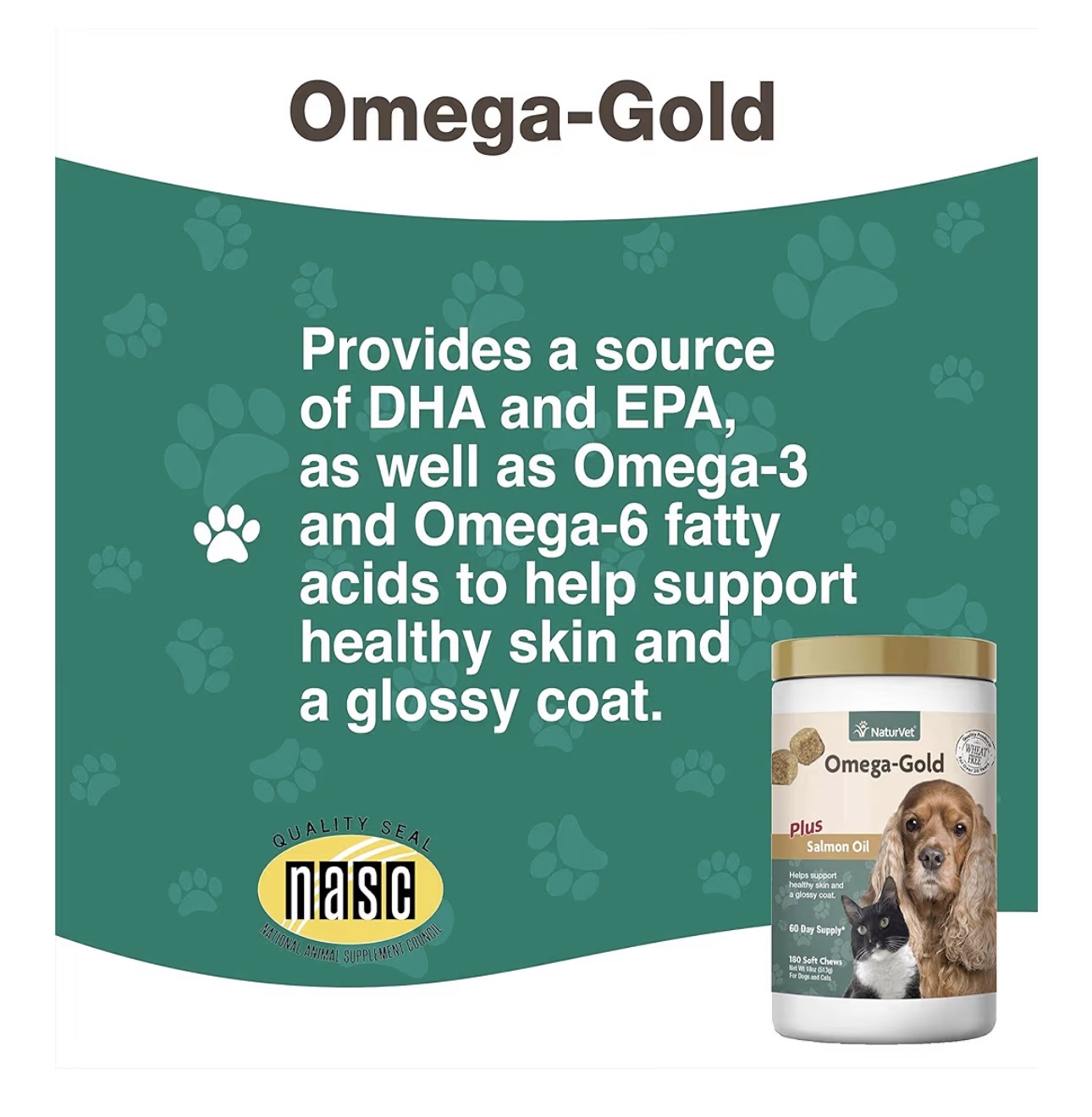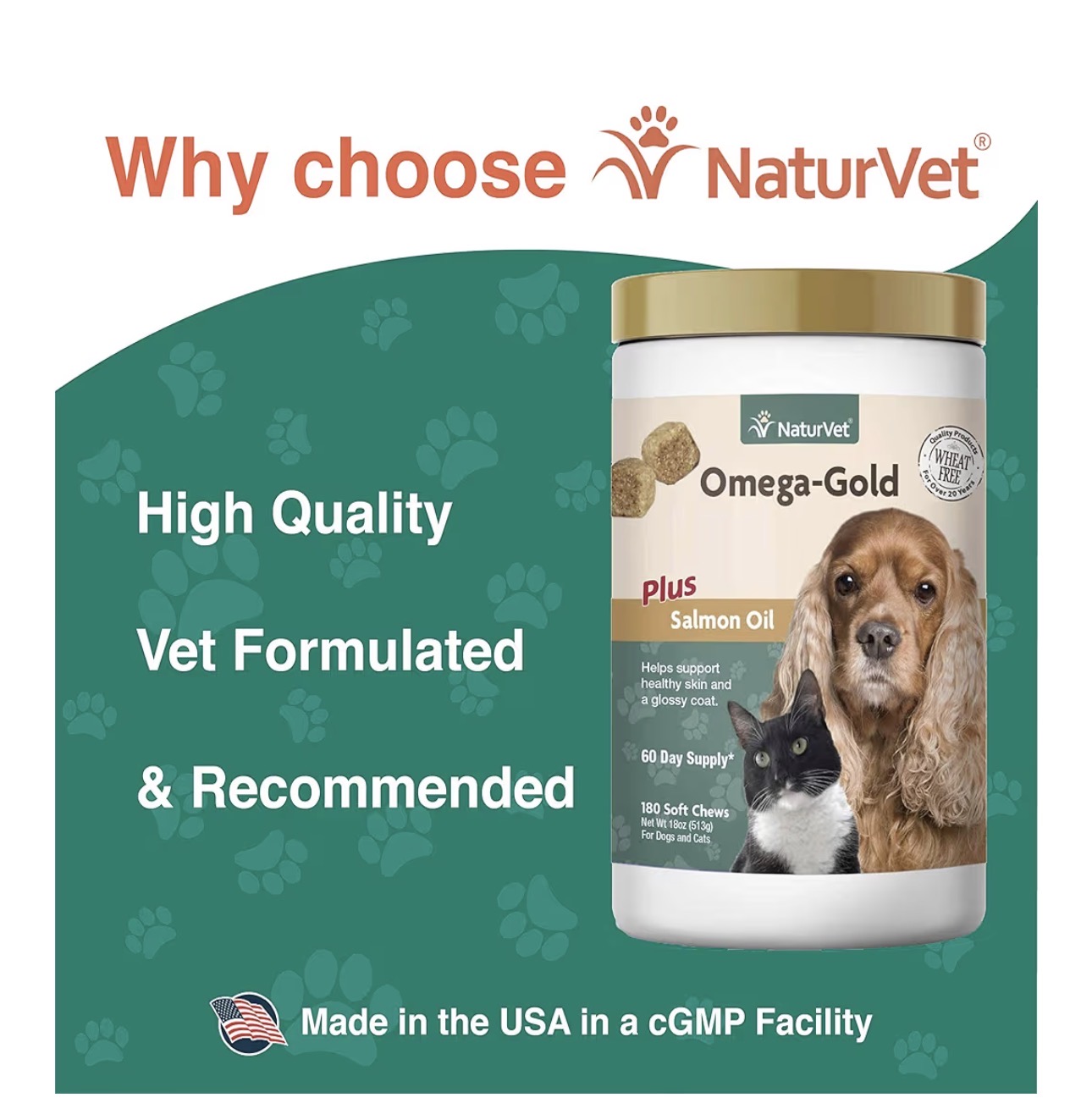 NaturVet - Omega-Gold Plus Salmon Oil 180 Soft Chews