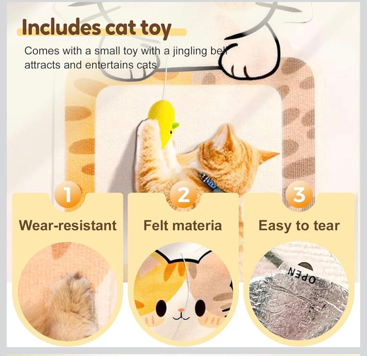 • نصب آسان: نصب ساده و راحت، امکان قرار دادن پد در هر مکانی که گربهتان عادت به خراشیدن دارد را فراهم میکند؛ چه روی دیوار و چه کنار مبل.