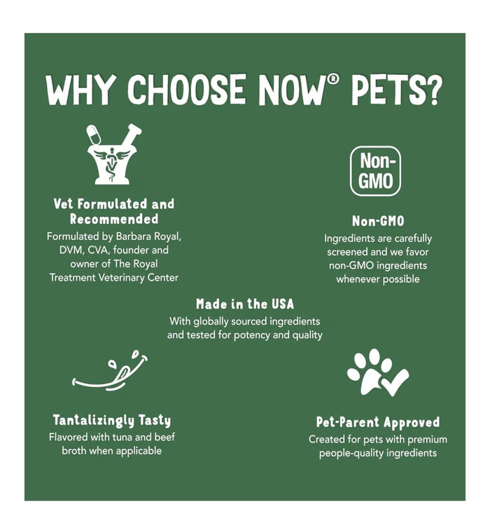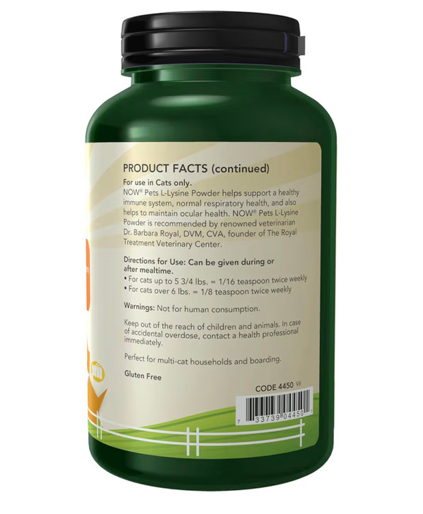 پودر L-Lysine برند NOW Pets توسط دامپزشک شناختهشده دکتر باربارا رویال (مؤسس مرکز دامپزشکی Royal Treatment) توصیه میشود.
