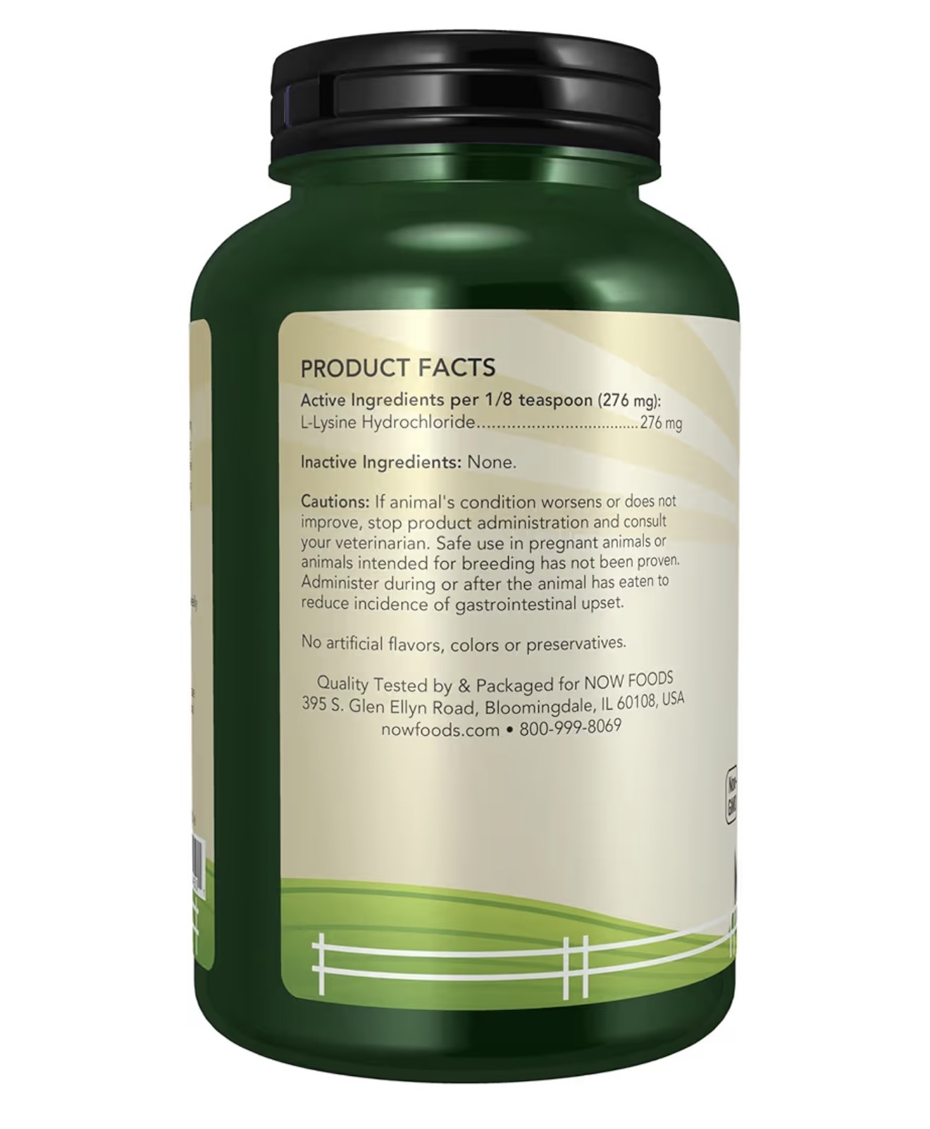 پودر L-Lysine برند NOW Pets به حمایت از سیستم ایمنی سالم، سلامت طبیعی دستگاه تنفسی و همچنین حفظ سلامت چشمها کمک میکند.
