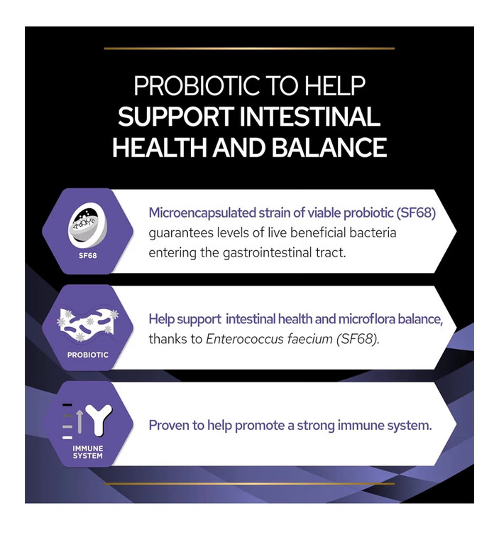 • مکمل غذایی Purina Pro Plan برای گربههای دارای معده حساس، مناسب برای مدیریت تغذیهای بچهگربهها و گربههای بالغ با اسهال.