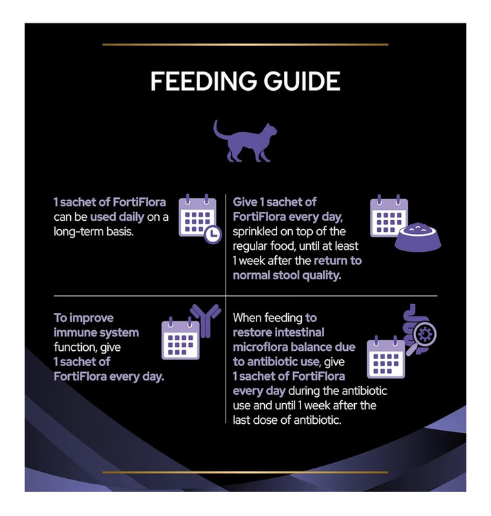 • ویتامینها و مکملهای FortiFlora دارای آنتیاکسیدانهایی برای حمایت از سیستم ایمنی قوی و بهبود سلامت گربهها.