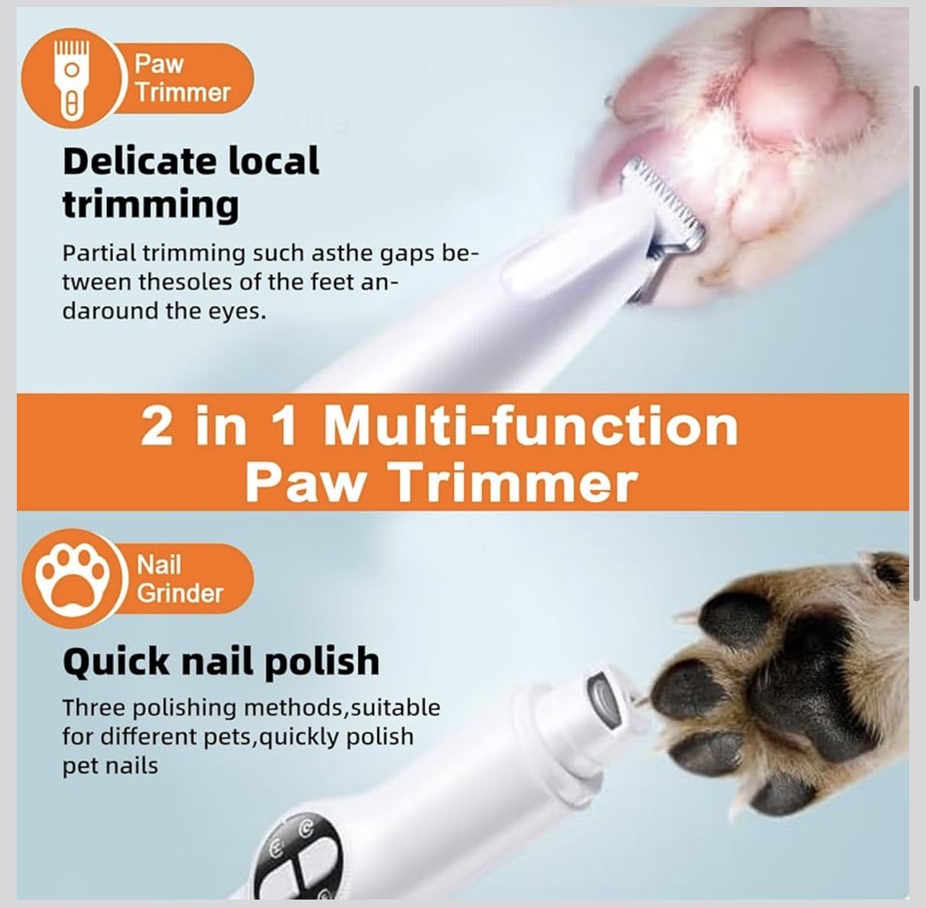 موزر دو منظوره اصلاح موهای ظریف پت و سوهان برقی ناخن پت