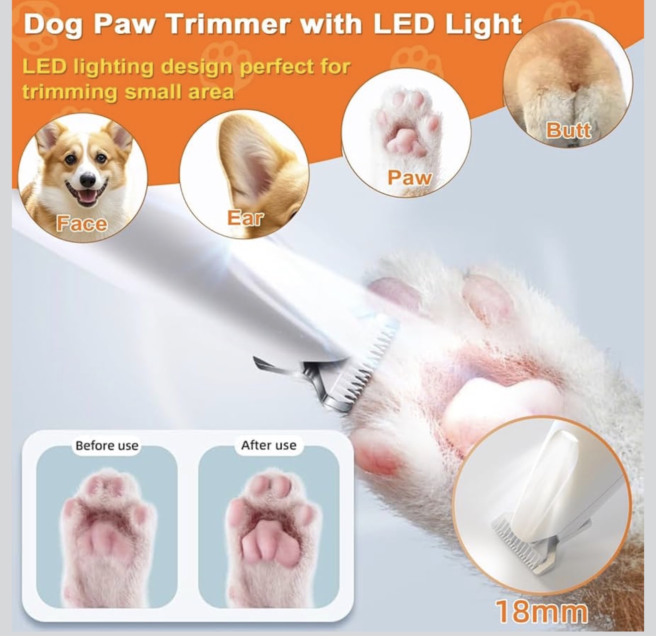 Dog Paw Trimmer with LED Light, Upgraded 2 in 1 Dog Grooming Kit, Cordless Pet Nail Trimmers Grinder with 3 Ports for Small Medium Large Dogs