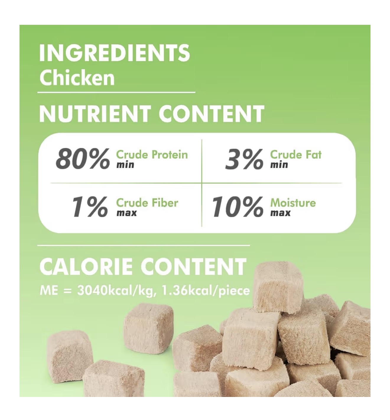 • 【تکماده خالص】 – این تشویقیهای سگ و گربه منجمد خشک شده، با 100٪ مرغ باکیفیت تهیه شدهاند و فقط شامل یک ماده هستند. بدون افزودنی، بدون غلات، بدون نگهدارنده – فقط گوشت طبیعی و خالص که میتوانید به آن اعتماد کنید.