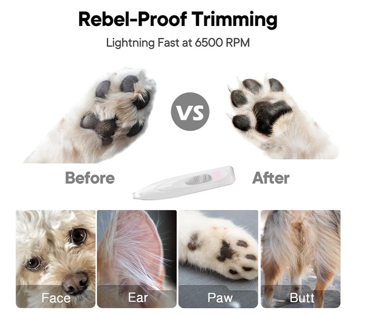 • 【اصلاح بیصدا】: موتور کمصدا صدا و لرزش را به حداقل میرساند و تجربهای آرام و لذتبخش برای حیوان خانگی شما فراهم میکند.