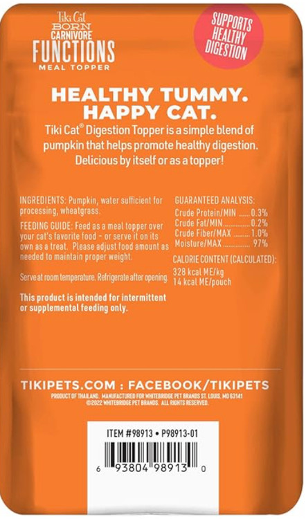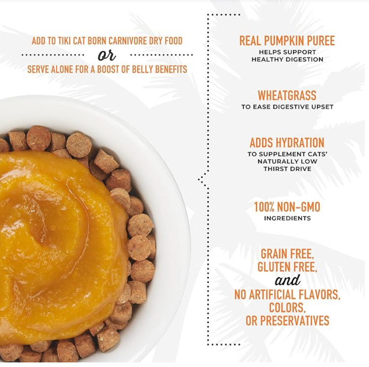 به غذای خشک گوشتخوار گربه تیکی اضافه کنید یا به تنهایی سرو کنید تا فواید شکم را افزایش دهید.