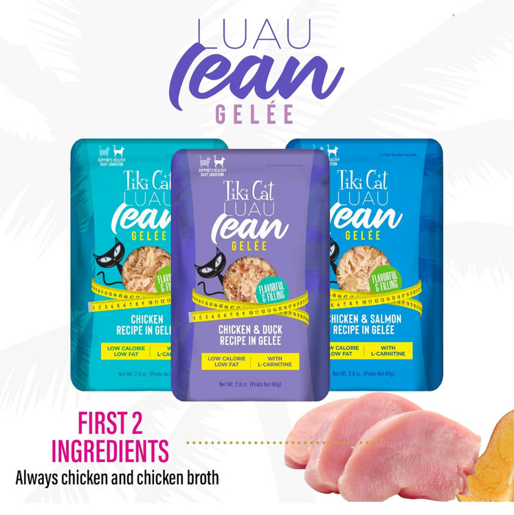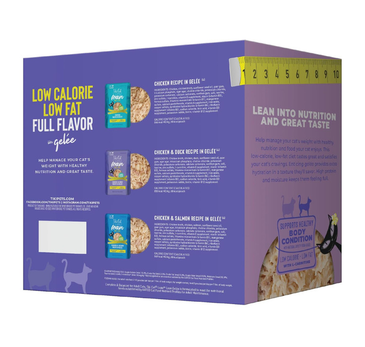 - **حفظ وضعیت بدنی سالم:** غذای تر کمکالری و کمچرب Tiki Cat Luau Lean Gelee از وزن سالم گربهتان حمایت میکند.