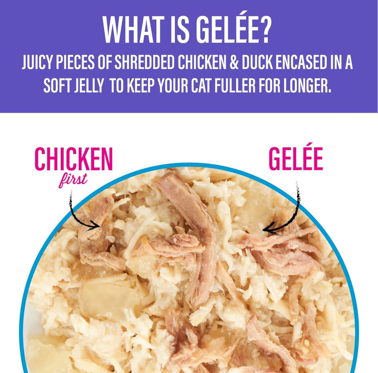 - **بافت ژلهای نرم:** غذای گربه با بافت ژلهای شامل تکههای آبدار مرغ خردشده درون ژله، که به گربهتان حس سیری بیشتر میدهد و به حفظ وزن کمک میکند.