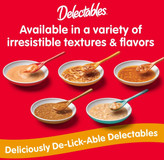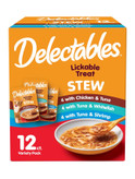- **محتویات:** این بسته Delectables Stew شامل دوازده (۱۲) عدد تشویقی لیسیدنی ۱.۴ اونسی برای گربهها است.