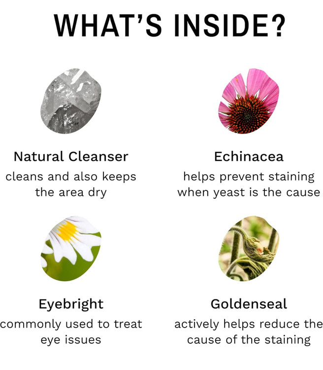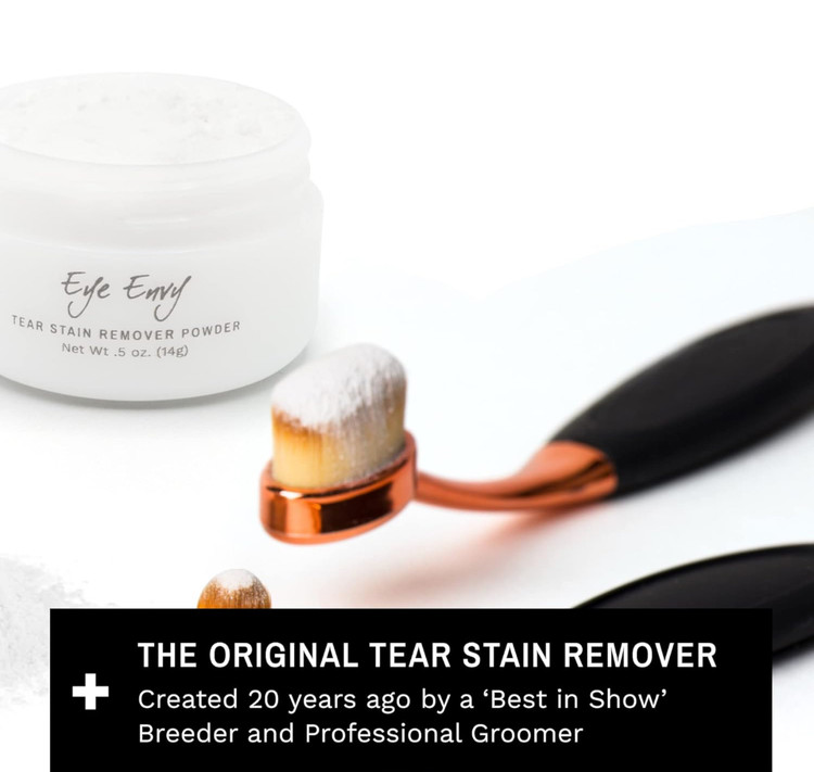 - **سیستم ۳ مرحلهای:** از پاککننده لکه اشک Eye Envy برای از بین بردن لکههای سنگین و باقیماندهها استفاده کنید. سپس از محلول یا دستمالهای Eye Envy برای تمیز کردن ناحیه موردنظر استفاده کنید. در نهایت، پودر پاککننده لکه اشک Eye Envy را برای جذب رطوبت و جلوگیری از جاری شدن اشک به کار ببرید تا از تشکیل دوباره لکهها جلوگیری شود.