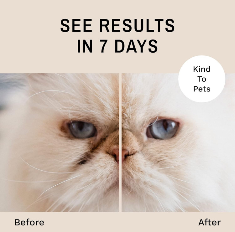 - **مؤثر بر نژادهای سفید/صورت صاف:** این محصول توسط پرورشدهندگان، دامپزشکان، آرایشگران حرفهای و علاقهمندان به نمایشهای سگ و گربههای فانتزی در سراسر جهان ثابت شده است. مؤثر بر نژادهای اسباببازی با رنگ سفید/روشن، سگهای دارای چینهای پوستی و نژادهای گربه صورت صاف مانند پرشین.