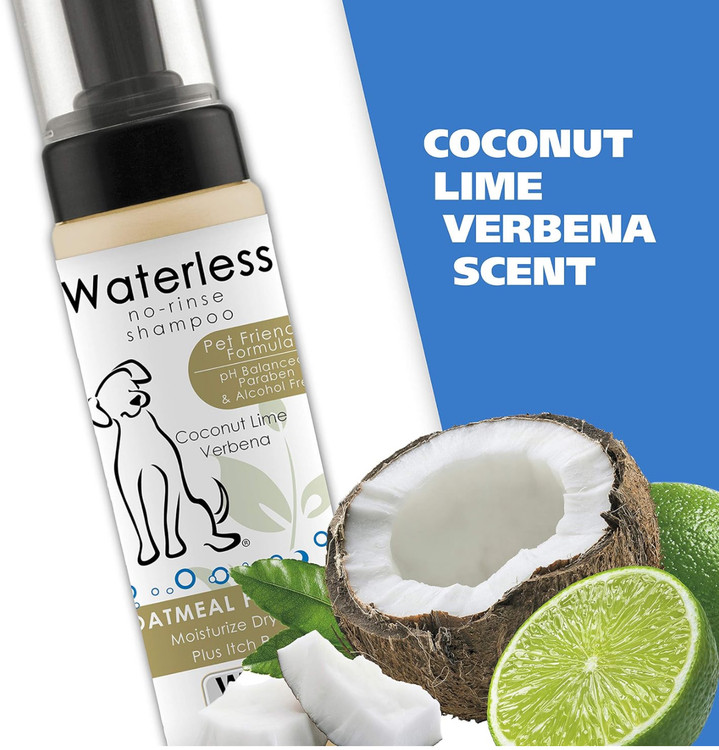 “🛁 شامپوی بدون نیاز به آبکشی با عصاره جو دوسر و نارگیل و لیمو! 🌿 ساختهشده در آمریکا 🇺🇸 با فرمول pH متعادل، بدون الکل، پارابن و PEG-80 برای تمیز و تازه کردن موهای سگها، گربهها و سایر حیوانات خانگی.