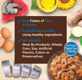 “🐟 تکههای ماهی تن و میگو: این غذای طبیعی گربه بدون غلات بوده و تغذیهی طبیعیای را که گربهتان هوس میکند فراهم میکند. منبع عالی پروتئینهای باکیفیت برای یک تغذیه کامل و متعادل.