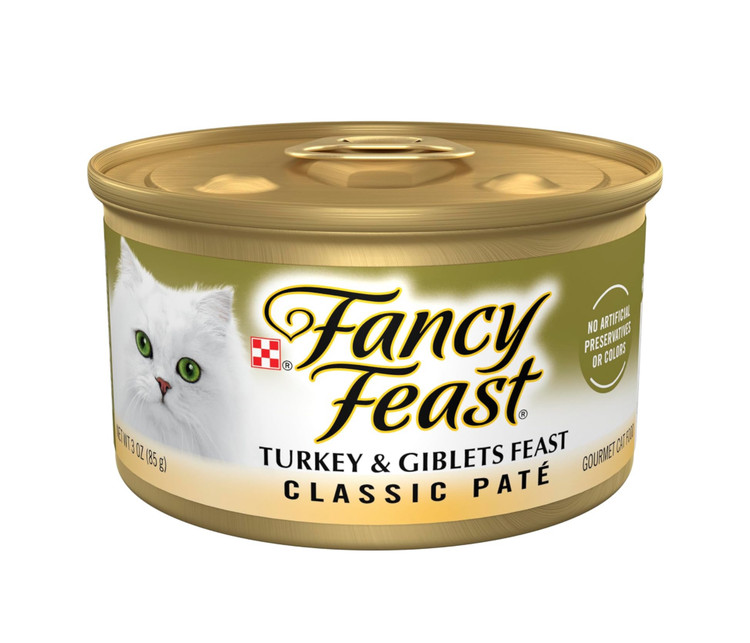 غذای مرطوب گربه Purina Fancy Feast بدون استفاده از رنگها و مواد نگهدارنده مصنوعی تهیه شده است.
